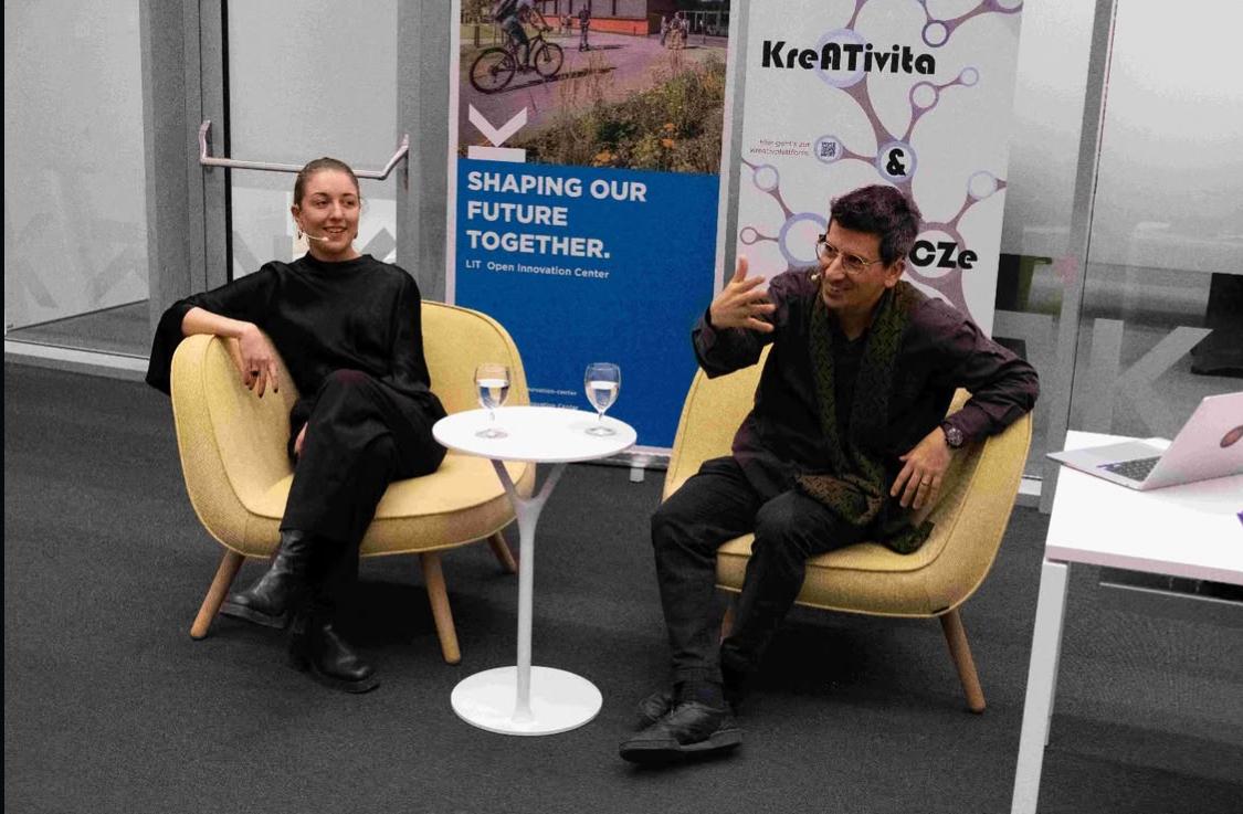 On November 27, 2025, the LIT Open Innovation Center (OIC) hosted the second OIC Masterclass as part of the Interreg project „KreATivita&InovaCZe“. Under the title “Creative Practices as Knowledge Generation”, ” Dr. Joaquín Santuber - legal scholar, design researcher, and head of the Metaverse Labs at the Linz Institute for Transformative Change (LIFT_C) at JKU - discussed together with artist and researcher Kristina Tica (LIFT_C, JKU), how creative practices can not only create things, meanings, and change, but also systematically generate knowledge.